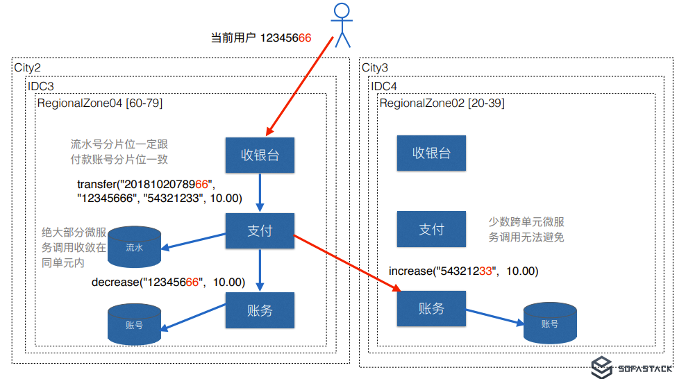 从小王所在城市(北京)到支付宝的生产机房(杭州)进行一次异地请求。