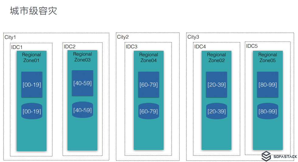 | 同城多机房阶段二 | 非必要的跨机房网络开销小;机房级容灾能力 | 城市级单点 |